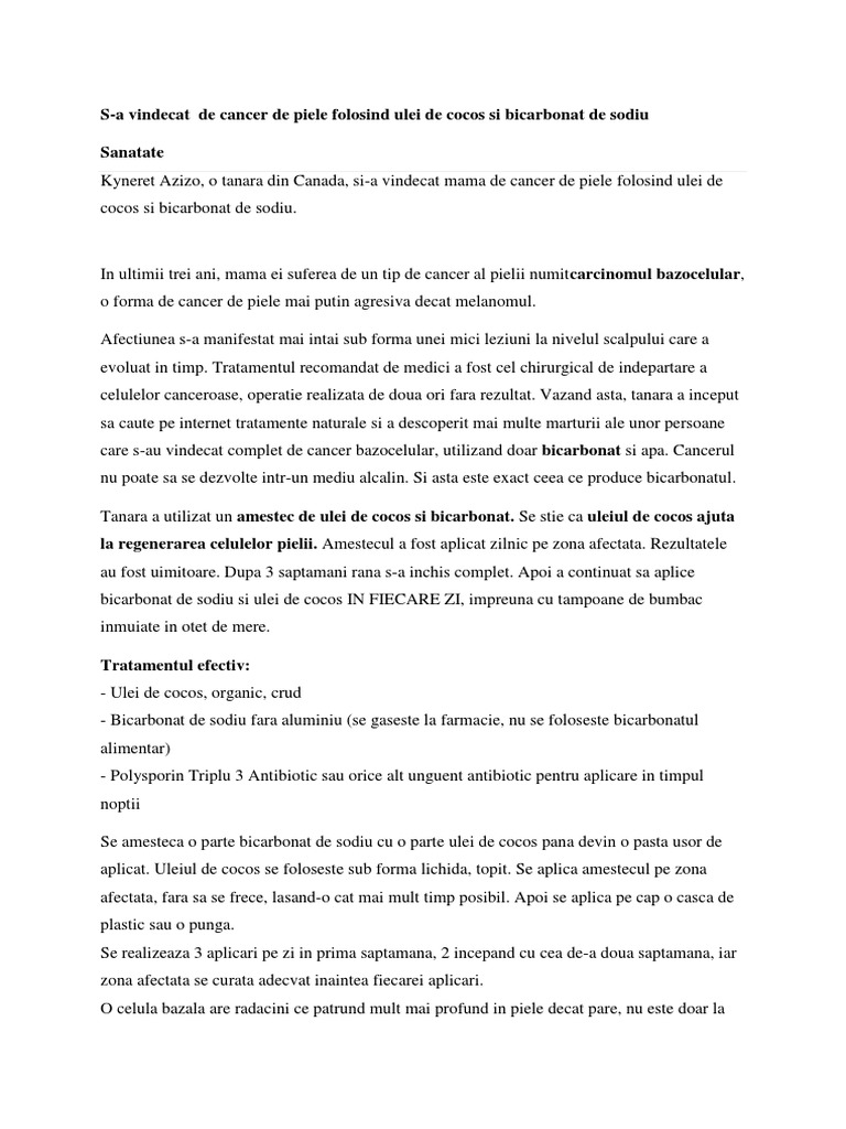 S A Vindecat De Cancer De Piele Folosind Ulei De Cocos Si Bicarbonat De Sodiu