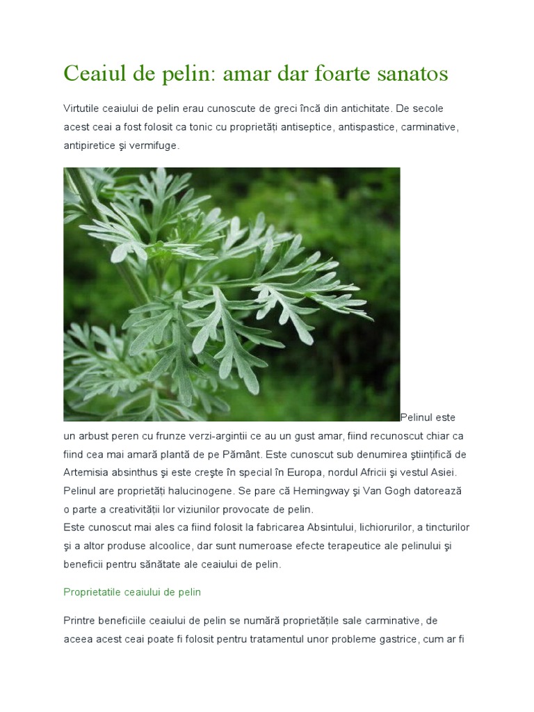 Ceaiul De Pelin Beneficii Si Contraindicatii Ceaiuri Naturale