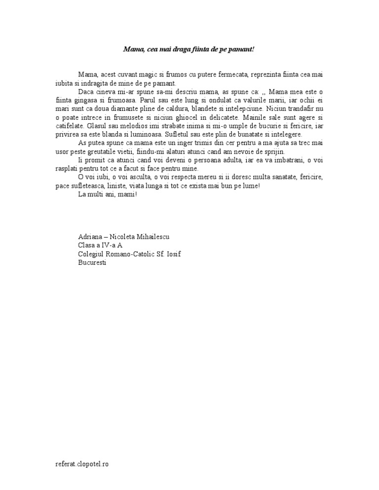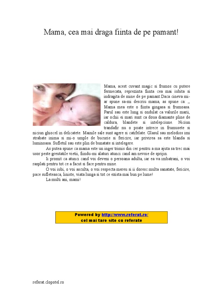 Mama Cea Mai Draga Fiinta De Pe Pamant Powered By Cel Mai Tare Site Cu Referate