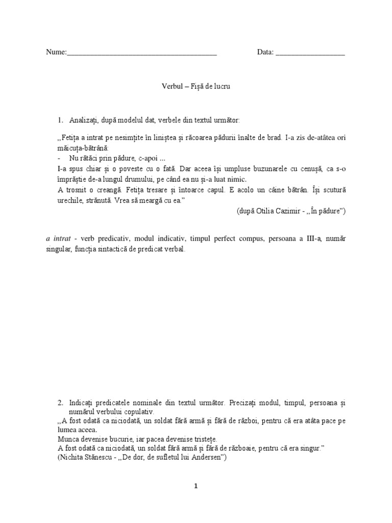 1 Indicati Predicatele Nominale Din Textul Urmator Si Precizati Conjugarea Modul Timpul Persoana Brainly Ro
