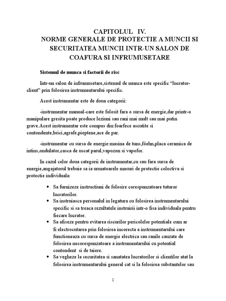 106560685 Norme Generale De Protectie A Muncii Si Securitatea Muncii Intr Un Salon De Coafura Si Infrumusetare Doc