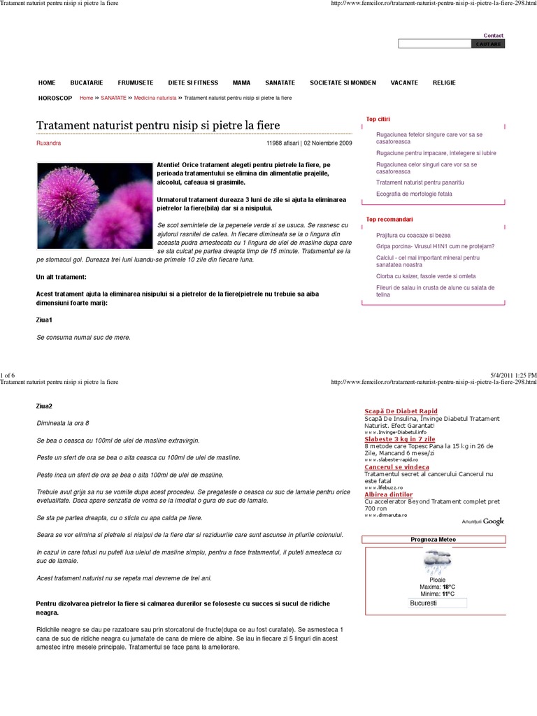 Tratament Naturist Pentru Nisip Si Pietre La Fiere